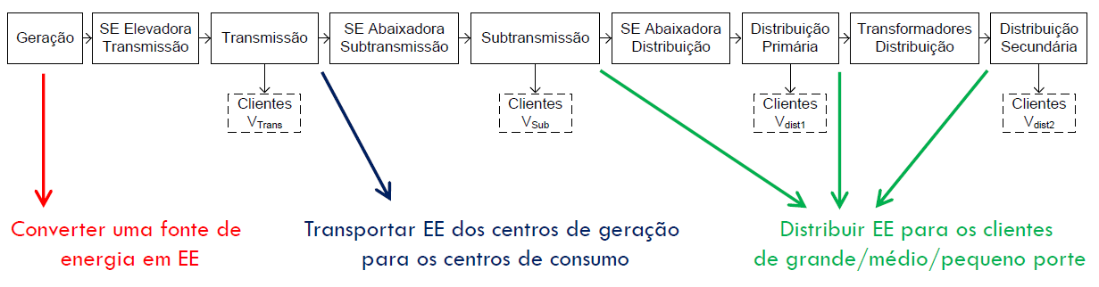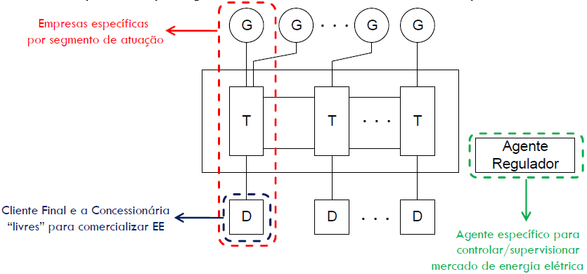 Transmissão e distribuição continuam sendo como concessão e são reguladas de forma a permitir um ambiente competitivo para a geração e comercialização.