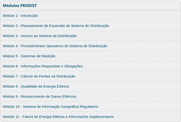 PRODIST: Procedimentos de Distribuição de Energia Elétrica no Sistema Elétrico Nacional.
