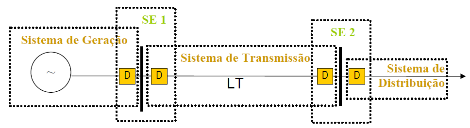 Circuitos: Linha (transmissão ou distribuição), alimentadores, transformadores, etc.