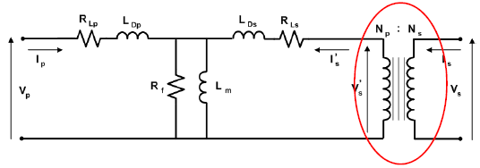 Seja um transformador ideal com relação de transformação $\small N_1$:$\small N_2$.