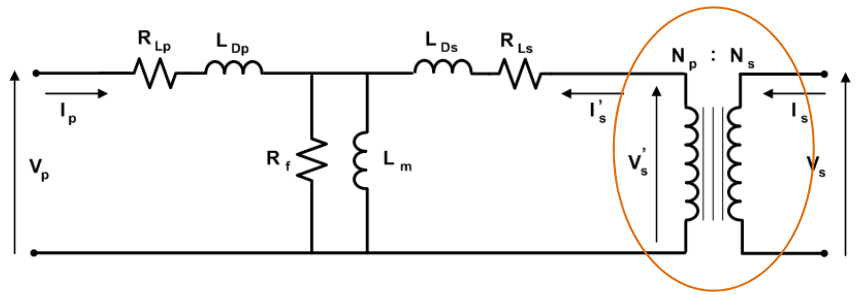 Elimina os enrolamentos de um transformador ideal quando a relação entre as tensões de base é igual à relação entre as tensões nominais dos enrolamentos de primário e secundário.